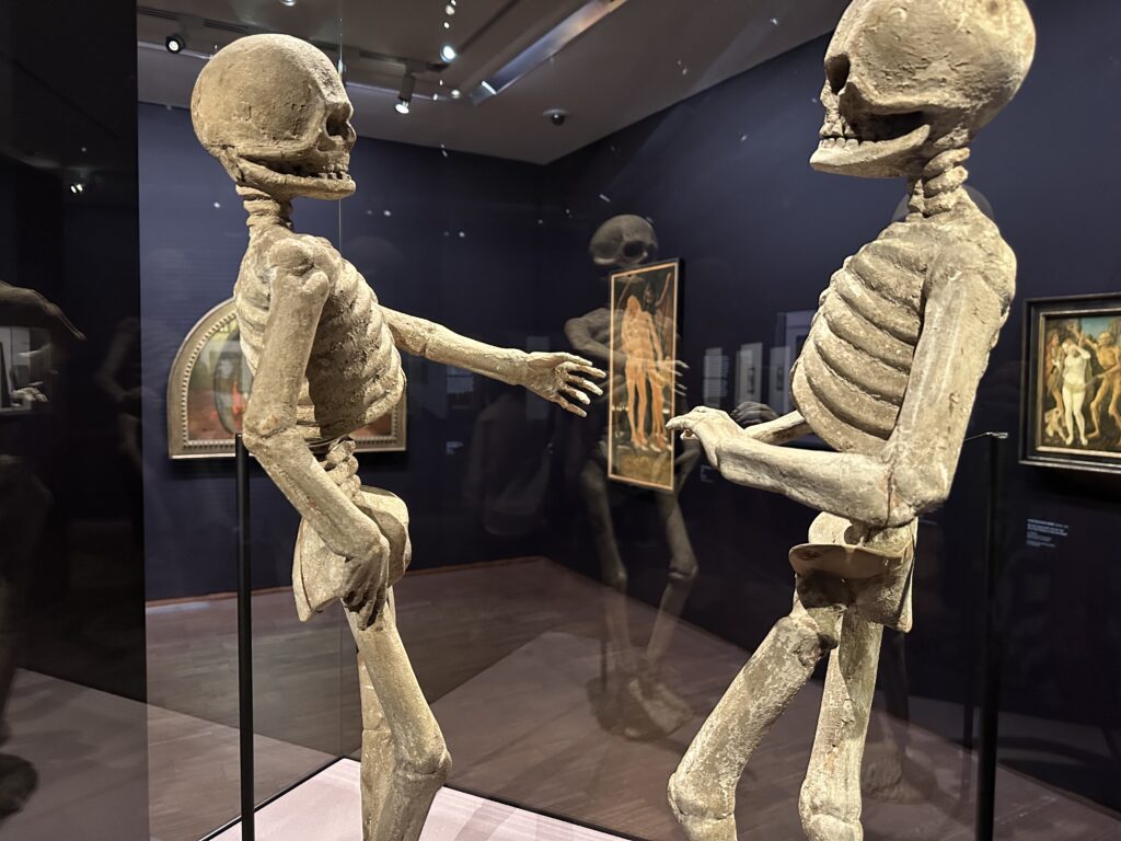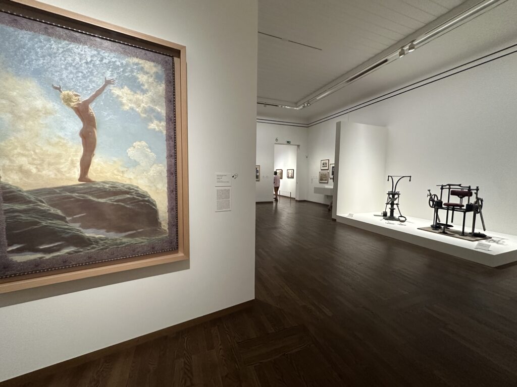 Arnold Böcklin: Selbstbildnis mit fiedelndem Tod, 1872, Öl auf Leinwand (Staatliche Museen zu Berlin, Preußischer Kulturbesitz, Alte Nationalgalerie). Foto: bpk / Nationalgalerie, SMB / Jörg P. Anders // Betende Frau [auch Betendes Mädchen], 1892, Bleistift, Tinte und Tusche auf Papier, Museum für moderne und zeitgenössische Kunst, Straßburg // Albrecht Dürer: Betende Hände, 1508 Pinsel in Grau und Schwarz, grau laviert, mit Deckweiß gehöht, auf blau grundiertem Papier. Photo by Art with me in the Albertina, 2025